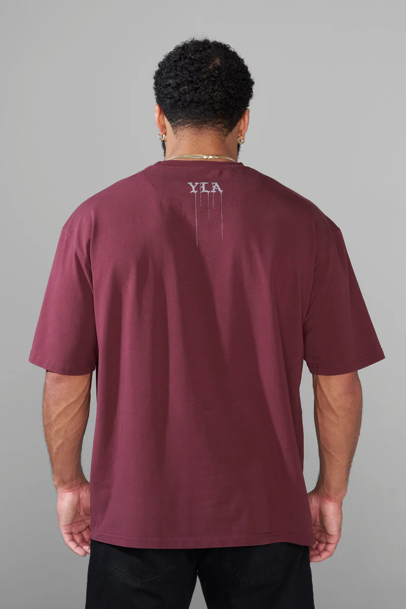 4116 – Floral Skull Tees Froest Dark Red // YoungLa