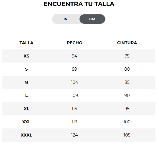 | Talla | Extra Large (XL), Extra Small (XS), Large (L), Medium (M), Small (S) |