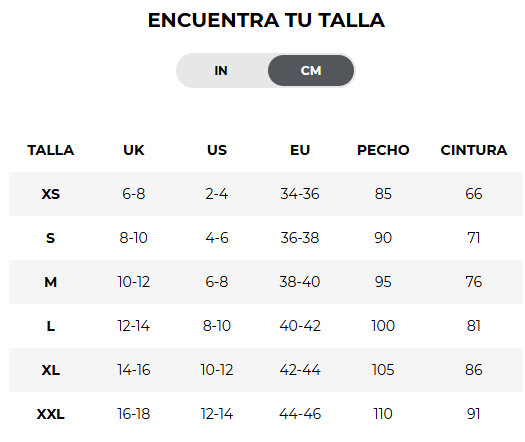 | Talla | Extra Large (XL), Extra Small (XS), Large (L), Medium (M), Small (S) |