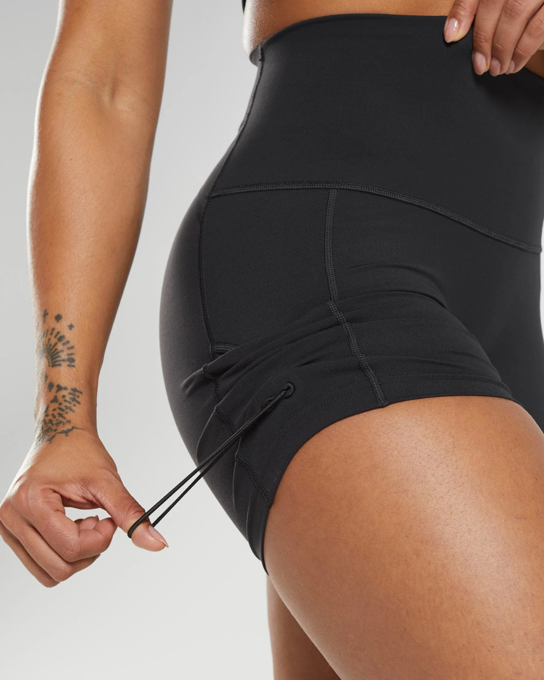 • Cordón lateral para crear un efecto fruncido y un largo más corto.